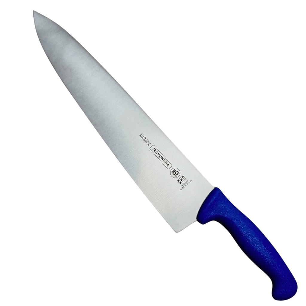 Cuchillo para carne Tramontina Profesional de 12 pulgadas, modelo 24609/012. Cuenta con lámina de acero inoxidable y mango de polipropileno azul, ideal para cortes precisos y uso continuo en cocina profesional.