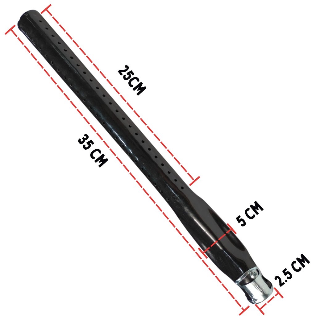Este es un quemador de gas tubular tipo flauta, ideal para la distribución lineal y uniforme del calor en equipos como estufones, parrillas, freidoras industriales, hornos de panadería o equipos de calentamiento. Su diseño delgado y alargado permite una cobertura eficiente a lo largo de una superficie.
