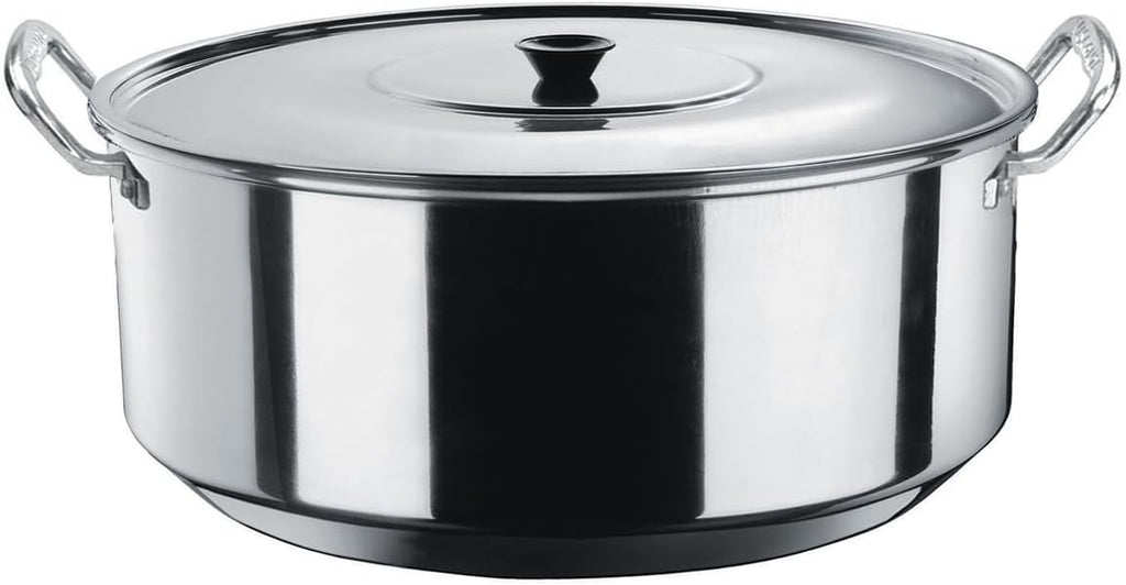 Ideal para preparar grandes porciones de arroz, sopas y guisados, esta arrocera Vasconia de 55 cm y 33 litros de capacidad está fabricada en aluminio de 0.8 mm de espesor, que ofrece una cocción rápida y uniforme. Incluye tapa de aluminio con pomo de baquelita y asas remachadas para mayor seguridad.